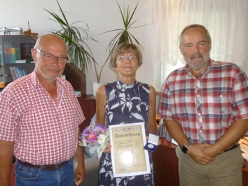 (H.Möcker) Der 5.September 2016 war für die Lehrer und Lehrerinnen der Siegfried Marcus Schule Malchin nicht nur der Start ins neue Schuljahr, es wurde auch ein besonderes Jubiläum gegangen. Frau Dr.Arndt – unsere Schulleiterin – nahm die herzlichen Glückwünsche der Kollegen und Kolleginnen anlässlich ihres Jubiläums – 25Jahre Schulleiterin – entgegen. Mit viel Kraft und Engagement hat sie die Schule von der Realschule in den 90-iger Jahren bis zur jetzigen Regionalen Schule „Siegfried Marcus“ geführt. Frau Dr.Arndt, selbst einmal Schülerin dieser Schule, kehrte nach ihrem Lehrerstudium in ihre Heimatstadt und an ihre „alte“ Schule zurück. Mit dem Jahr 1991 begann sie dann an dieser Schule ihre Schulleitertätigkeit. Viele Schülergenerationen hat sie seit dem zu einem erfolgreichen Schulabschluss geführt. Mit manch ehemaligen Schülern arbeitet sie heute in den Schulgremien zusammen. Von allen, ob Schüler, Eltern und Lehrern wird ihr engagierter Einsatz für alle Belange der Schule geschätzt. In diesen 25jähren als Schulleiterin gab es für sie viele schöne Momente. In enger Zusammenarbeit mit allen Gremien der Schule hat Frau Dr.Arndt die „Siegfried Marcus“ Schule zu dem gemacht, was sie heute ist und wofür sie steht. Wir wünschen Frau Dr.Arndt für die Zukunft Gesundheit, Schaffenskraft, Spaß und Freude sowie weiterhin viel Erfolg in ihrer Arbeit. Für ihre akribische Arbeit und ihr besonderes Engagement bei der Entwicklung der Malchiner Schullandschaft wurde Frau Dr.Arndt mit der Siegfried Marcus Ehrenmedaille des Schulfördervereins „Freunde und Förderer der Siegfried Marcus Schule Malchin e.V.“ ausgezeichnet. |