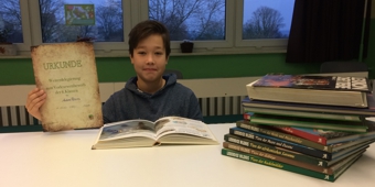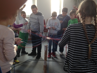 Klasse6b durfte den Riesen spielen, Yannick, Hannah und Lotte aus