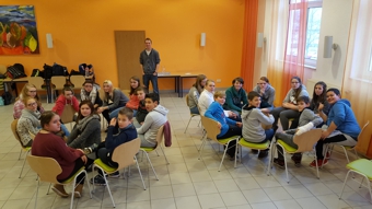 uns an der Schule zu Gast war, präsentierte den Schülern in dem