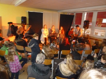 mit dabei war wie jedes Jahr die Schulband. Dass man mit Eimern, Blechdosen und Blumentöpfen ein perfektes Trommelkonzert geben kann, davon wurden die Zuschauer sehr schnell überzeugt. Weiterhin wurde man mit einem Klaviersolo, einem Klassentanz, Solobeiträgen, einer Line-Dance-Gruppe und zwei Breakdancern, um nur einige Beiträge zu nennen, überrascht. Selbst ein Abtauchen in die Unterwasserwelt gehörte zum Programm. Mit den Worten: „Ihr habt mit euren schönen Liedern und Aufführungen endlich den Frühling geweckt“, bedankte sich die Schulleiterin Frau Dr. Arndt bei allen Mitwirkenden. Alle Anwesenden waren sehr begeistert und das Konzert war für alle Beteiligten ein voller Erfolg. |