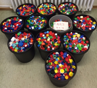 gemeinsam dabei ist. 85 buntbeklebte Schuhkartons voller