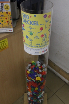 | (A.Teggatz) 31254 – Das ist das aktuelle Sammelergebnis der „Siegfried Marcus“ Schule Malchin bei der Aktion „Deckel gegen Polio“. Am Freitag, den 12.Mai, stand der zweite Abgabetermin der gesammelten Deckel im Terminplan der Marcusschule. Mit Unterstützung von Herrn Giese aus dem Rathaus der Stadt Malchin wurden die gesammelten Exemplare zum Malchiner Getränkeland gefahren. Die Verladung war für die teilnehmenden Schüler aus der Klasse 8b, Christian Kuhn und Hendrik Peters, dieses Mal recht einfach. Dank der vom ortsansässigen Versorger Remondis bereitgestellten 120 Liter Tonne auf Rädern, konnten die Deckel direkt bis an das Transportfahrzeug herangefahren werden. Zusammen mit der Marktleiterin Frau Schütt wurden alle 15427 Deckel aus der 2.Lieferung in große Plastesäcke gefüllt. Seit Beginn der Sammlung am 07.Januar 2017 konnte bereits Impfstoff gegen Polio für 62 Impfungen ersammelt werden. Das entspricht 31000 Deckel. Die meisten Deckel sammelte bisher als einzelne Schülerin Lisa Schmidt aus der Klasse 6a. Es waren ehrliche 1111Deckel. Durch dieses Ergebnis ist die Marcusschule ihrem selbstgesteckten Ziel von 50000Deckel bis zum Jahresende ein großes Stück näher gekommen. Nochmals ein großes Dankeschön an alle Beteiligten. |