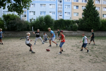 | (T.Engel) Mit dieser Frage beschäftigten sich in der ersten Ferienwoche 43 Schülerinnen und Schüler im Alter von 8 bis 14 Jahren aus Malchin und Umgebung beim Sommerferienangebot des Sozialwerkes. Zusammen mit neun haupt- und ehrenamtlichen Mitarbeitern gab es dazu Spiele (z.B. Jugger, das Elemente aus Fechten und Ringen verbindet), biblische Geschichten und eine Stadtralley, um Malchinerinnen und Malchiner nach ihrem Lieblingsort zu befragen. Als Antworten wurden z.B. die Bibliothek, der Steintor-Kindertreff, der Bahnhof oder der Marcusbrunnen genannt. Bei den hohen sommerlichen Temperaturen durfte natürlich auch der Eisladen als Lieblingsort nicht fehlen und so konnten sich alle bei einem leckeren Eis, das dankenswerter Weise von Jannys gesponsert wurde, erfrischen. Die traditionelle Fahrt in den Hansapark und eine Übernachtung rundeten die erlebnisreichen Tage ab. | |