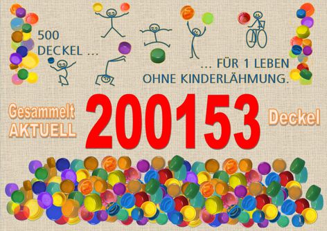 Tatsache. Schüler, Eltern und Lehrer der „Siegfried Marcus“ Schule legten sich gemeinsam noch einmal mächtig ins Zeug und sammelten tatsächlich bis zum letzten Schultag 200.153 Deckel. 500 Deckel sind der Gegenwert für eine Polioimpfung. Über die Beschaffung und deren Verteilung wachte ehrenamtlich der Rotaryclub. 400 Impfungen gegen Kinderlähmung können nun aus dem Erlös dieser Sammlung bezahlt und durchgeführt werden. Im Vergleich dazu: In der Marcusschule lernen zur Zeit 361 Schüler und Schülerinnen. Ein gutes Gefühl, anderen Menschen auf so einfache Art und Weise zu helfen und Großes zu bewirken. Vielen Dank allen, die dabei waren und geholfen haben, dieser fiesen Krankheit den Kampf anzusagen und Kinder zu (be)schützen. „Deckel gegen Polio“ – ein voller Erfolg |