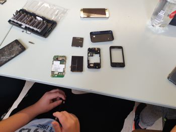 Programm: ein Smartphone auseinanderbauen. Die Leiter Daniel Smith