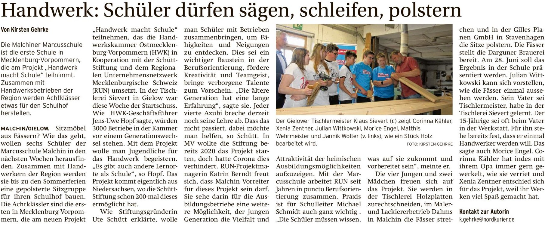 neunten Klassen der Siegfried-Marcus- Schule Malchin haben das