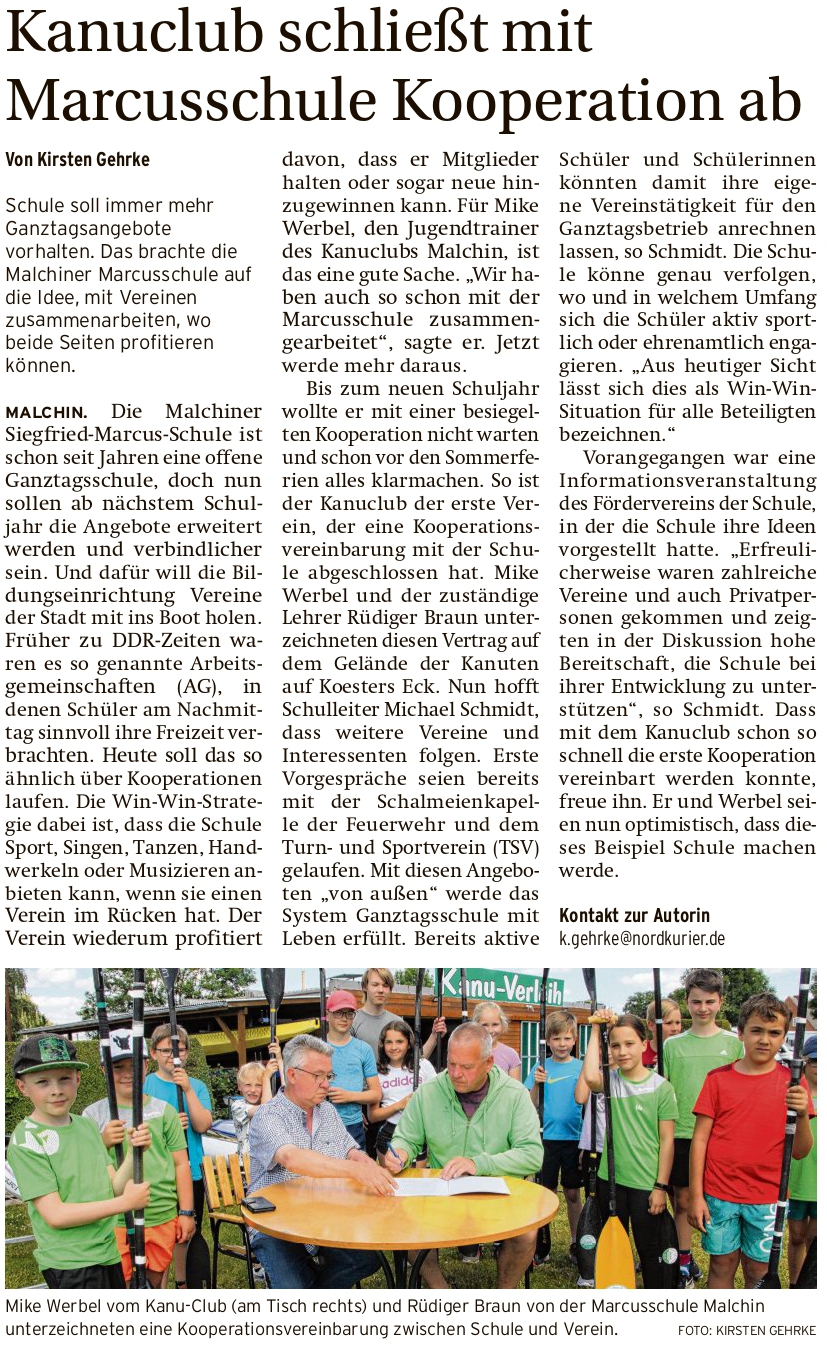 | (A.Süssig, Kassenwart) Am vergangenen Donnerstag hatte der Förderverein „Freunde und Förderer der Siegfried-Marcus-Schule Malchin“ e.V. Vereine und interessierte Bürger der zu eine Informationsveranstaltung eingeladen. Den Tagungsort stellte die Kunst-und Musikschule bereit. In lockerer Runde wurden Möglichkeiten für eine Kooperation diskutiert, wie man die Ganztagsangebote für die Schüler der Marcusschule erweitern kann, um die Vielfalt der für die Schüler durch externe Personalkräfte erweitern kann. Erfreulich, dass zahlreiche Vereine und auch Privatpersonen die Diskussion bereicherten und dabei viele Ideen einbrachten. Nun gilt es, diese Ideen mit Kooperationsverträgen in die Tat umzusetzen. Die Ideen reichten vom künstlerischen über sportlichen bis zu praktischen Bereich. Ziel ist es, erste Angebote bereits für das kommende Schuljahr den Schülern anzubieten. Leider wird es im sportlichen Bereich schwierig, da unsere Turnhallen zu Kapazitätsproblemen führen könnten. Der Verein bedankt sich für die konstruktive Diskussion der der anwesenden Gäste. |